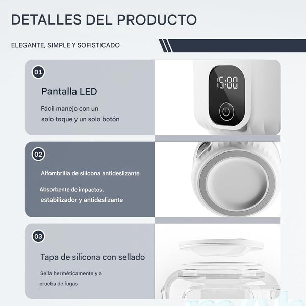 Con una carga completa, la batería dura varios ciclos de lavado, ideal para viajes o cuando no tienes acceso a tomas de corriente.